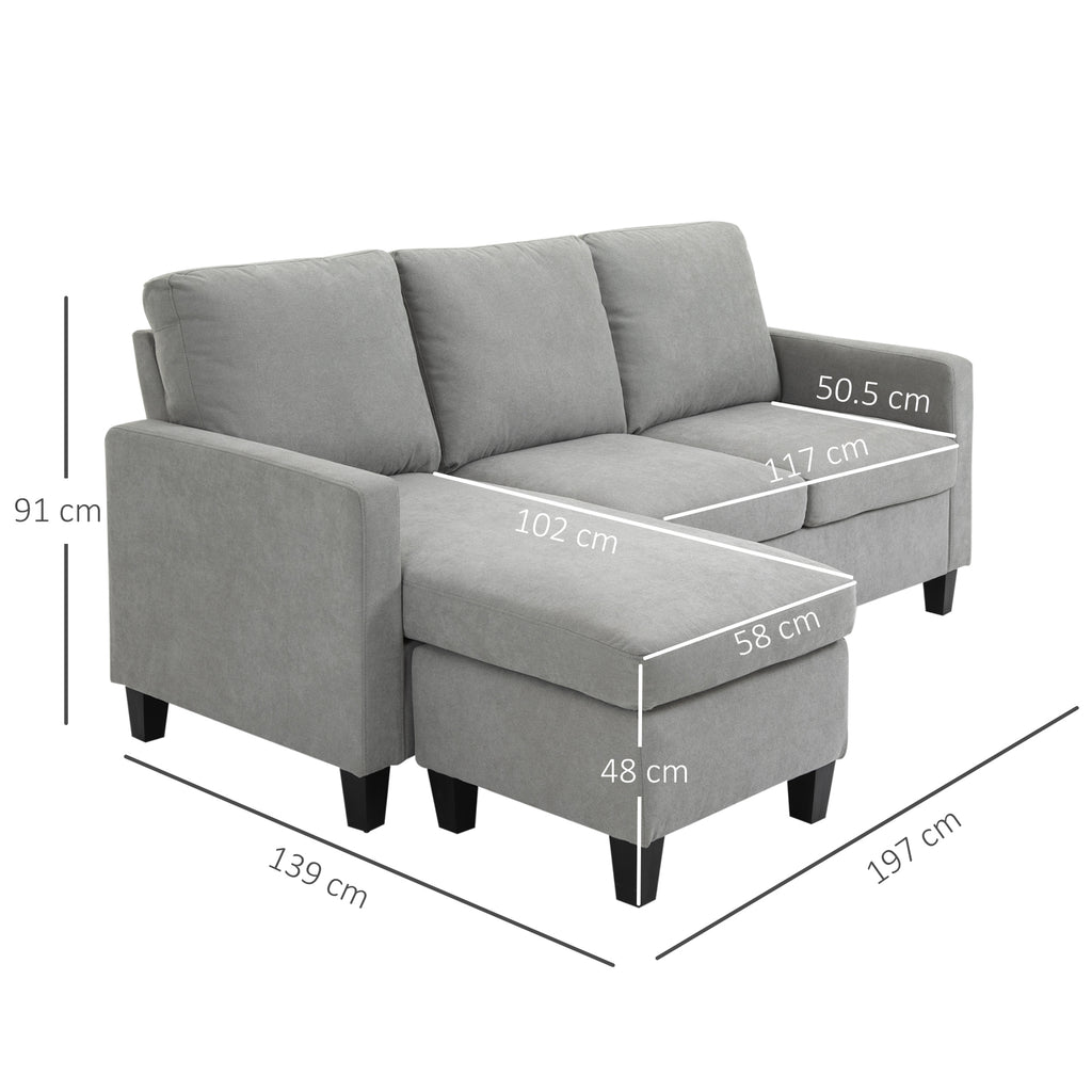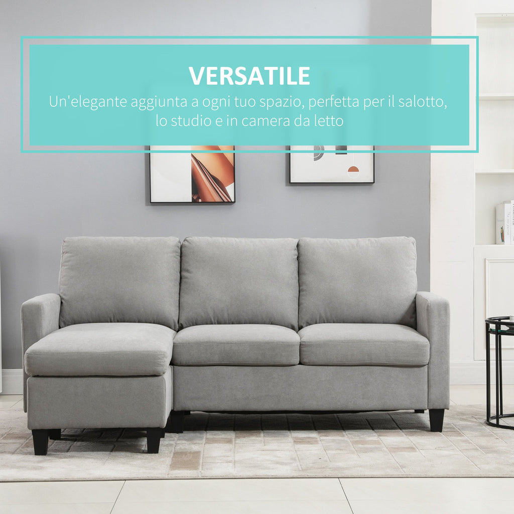 Divano 3 Posti 197x139x91 cm con Penisola Reversibile in Tessuto Grigio