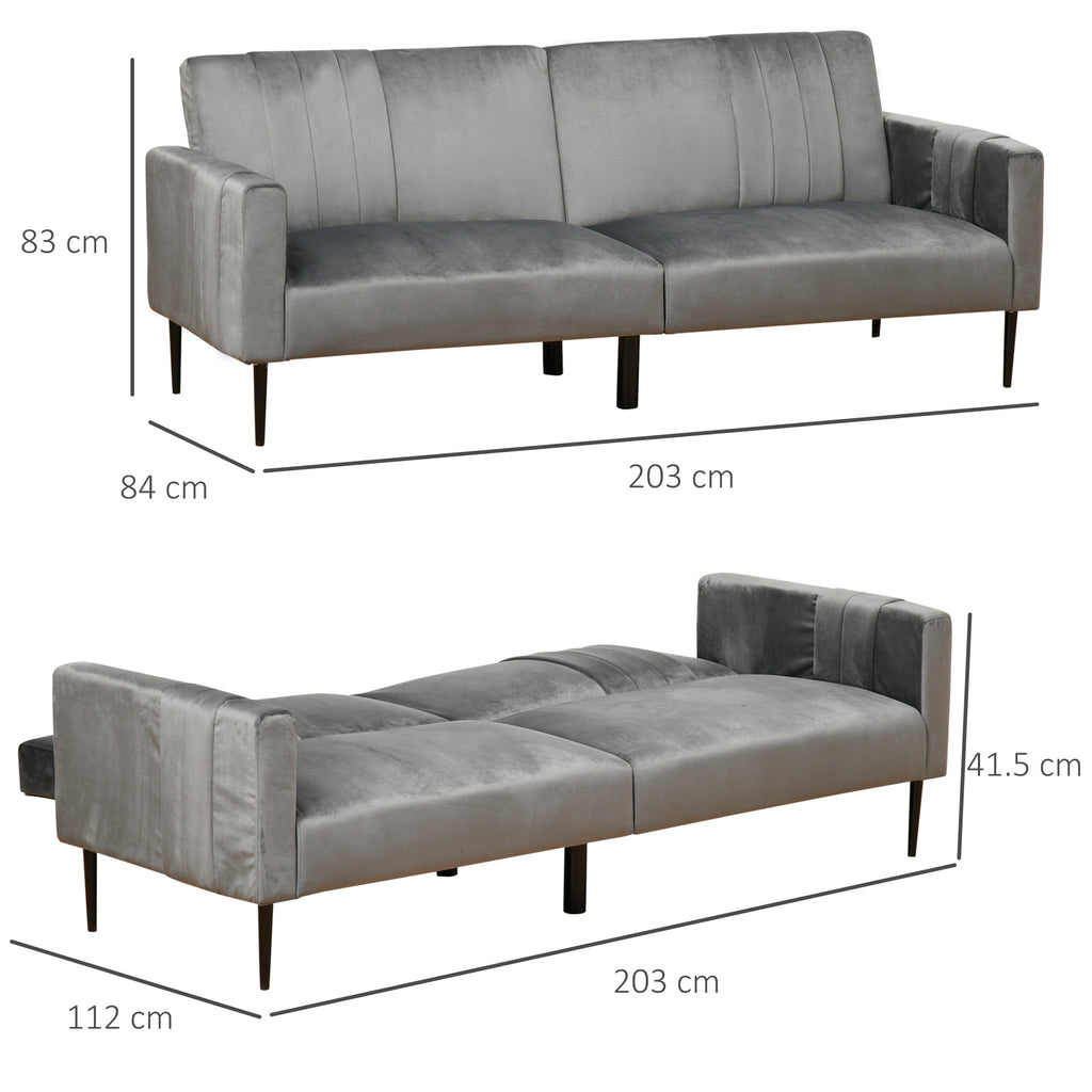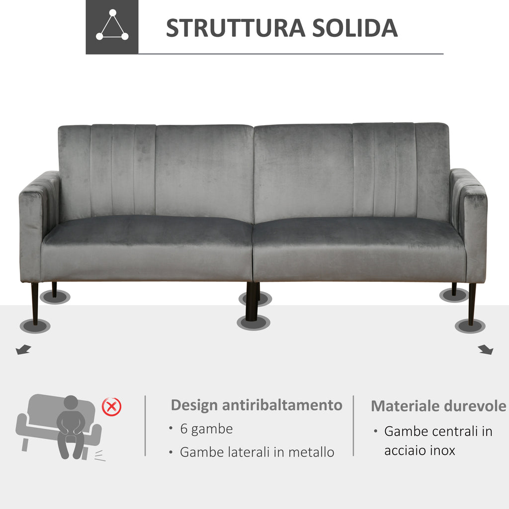 Divano 3 Posti 203x84x83 cm in Velluto Grigio Scuro