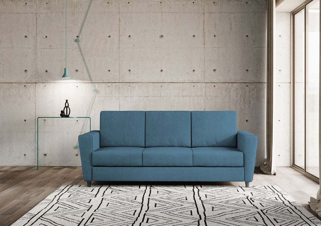 Divano 3 Posti 212x85x85 cm Yasel in Tessuto Avio