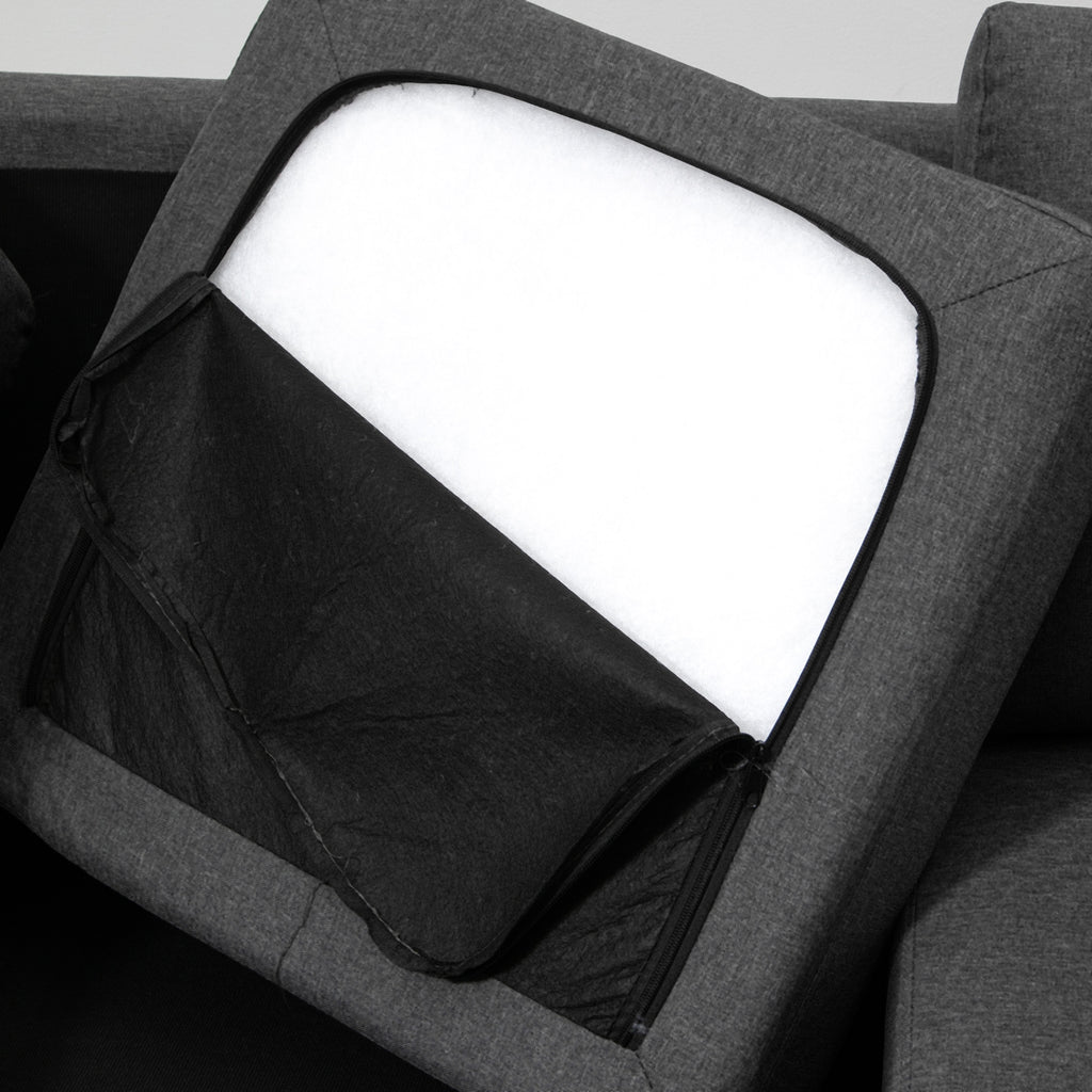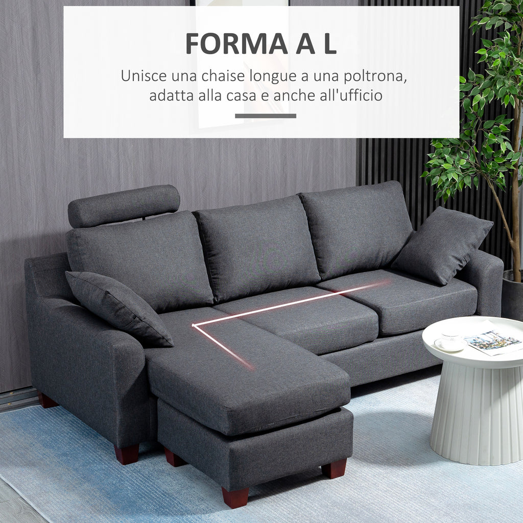 Divano 3 Posti con Poggiapiedi e Cuscini in Tessuto di Lino Grigio Scuro 194x80x86 cm