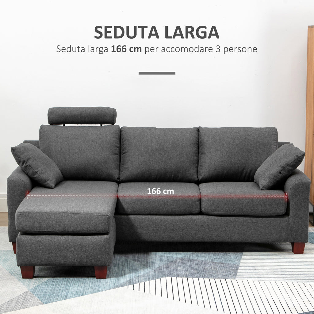 - Comodo divano a 3 posti in stile contemporaneo con poggiapiedi chaise longue.