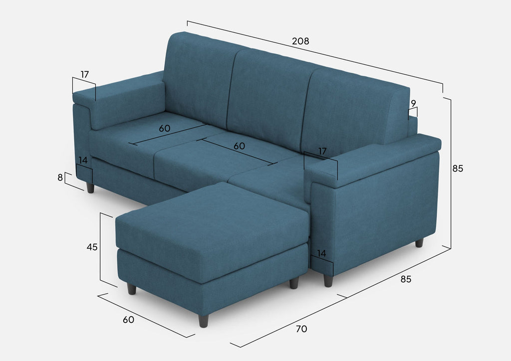 Divano 3 Posti con Pouf 208x155x85 cm Marrak in Tessuto Avio