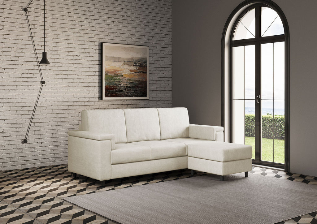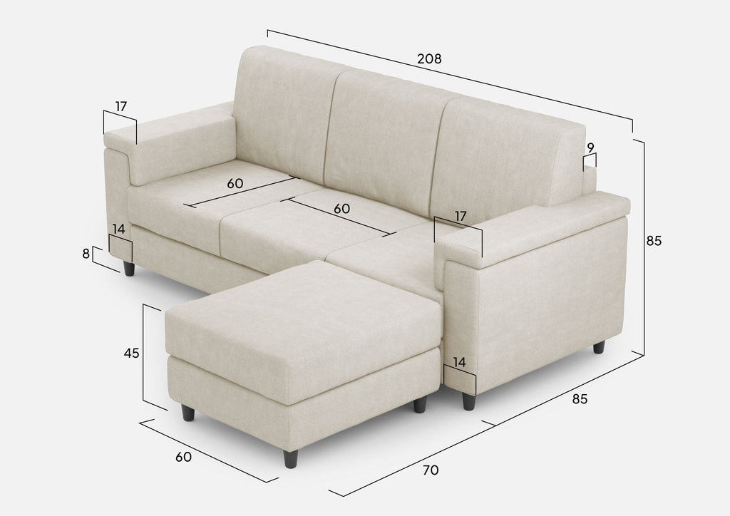 Divano 3 Posti con Pouf 208x155x85 cm Marrak in Tessuto Latte