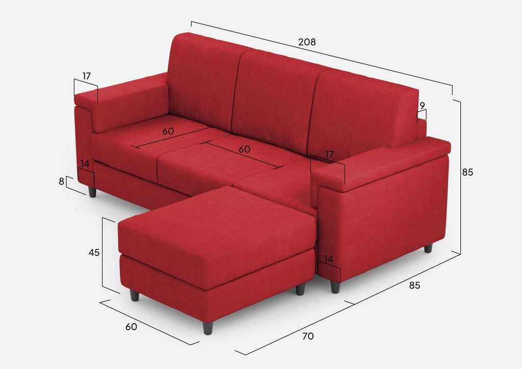 Divano 3 Posti con Pouf 208x155x85 cm Marrak in Tessuto Rosso