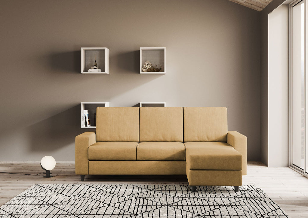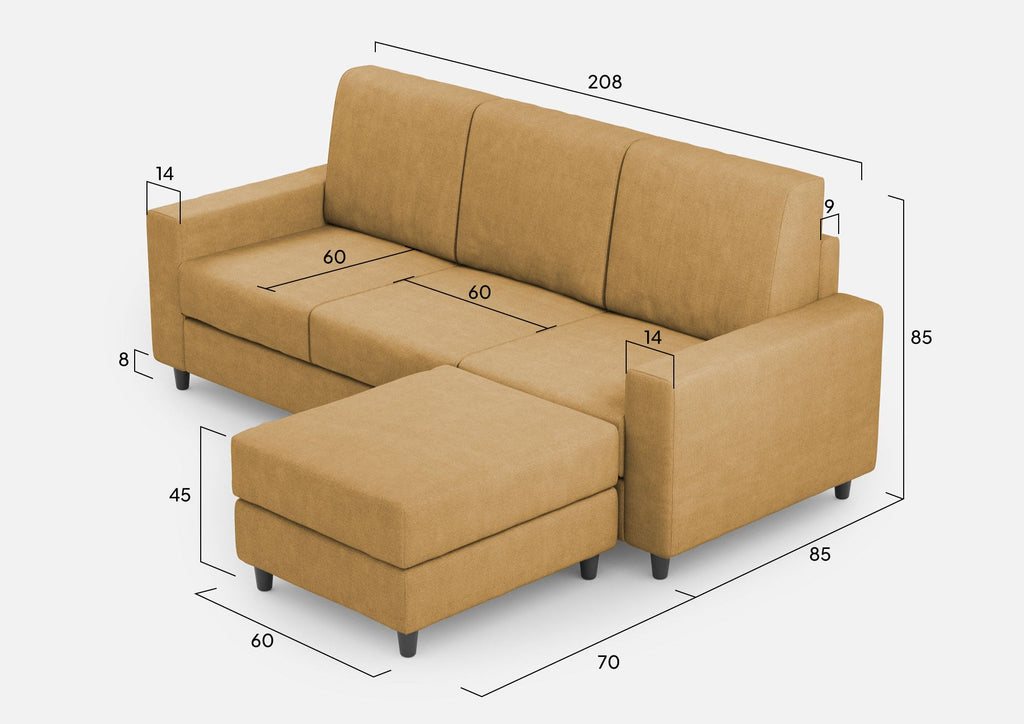 Divano 3 Posti con Pouf 208x155x85 cm Sakar in Tessuto Ocra