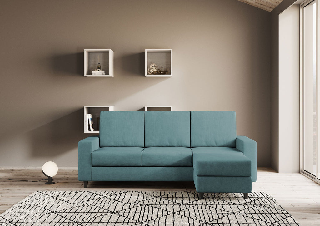 Divano 3 Posti con Pouf 208x155x85 cm Sakar in Tessuto Petrolio