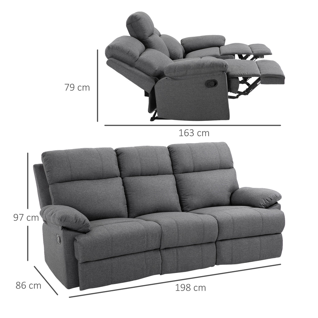 Divano 3 Posti con Schienale e Poggiapiedi Laterali Reclinabili Grigio Antracite 185x95x97 cm