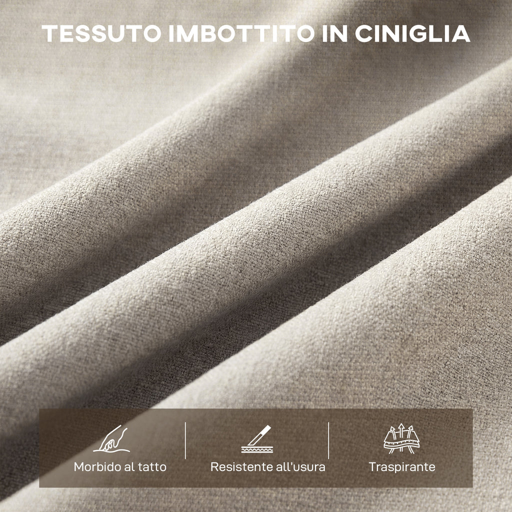 • Materiale: Ciniglia (100% poliestere), spugna, acciaio, pannello multistrato