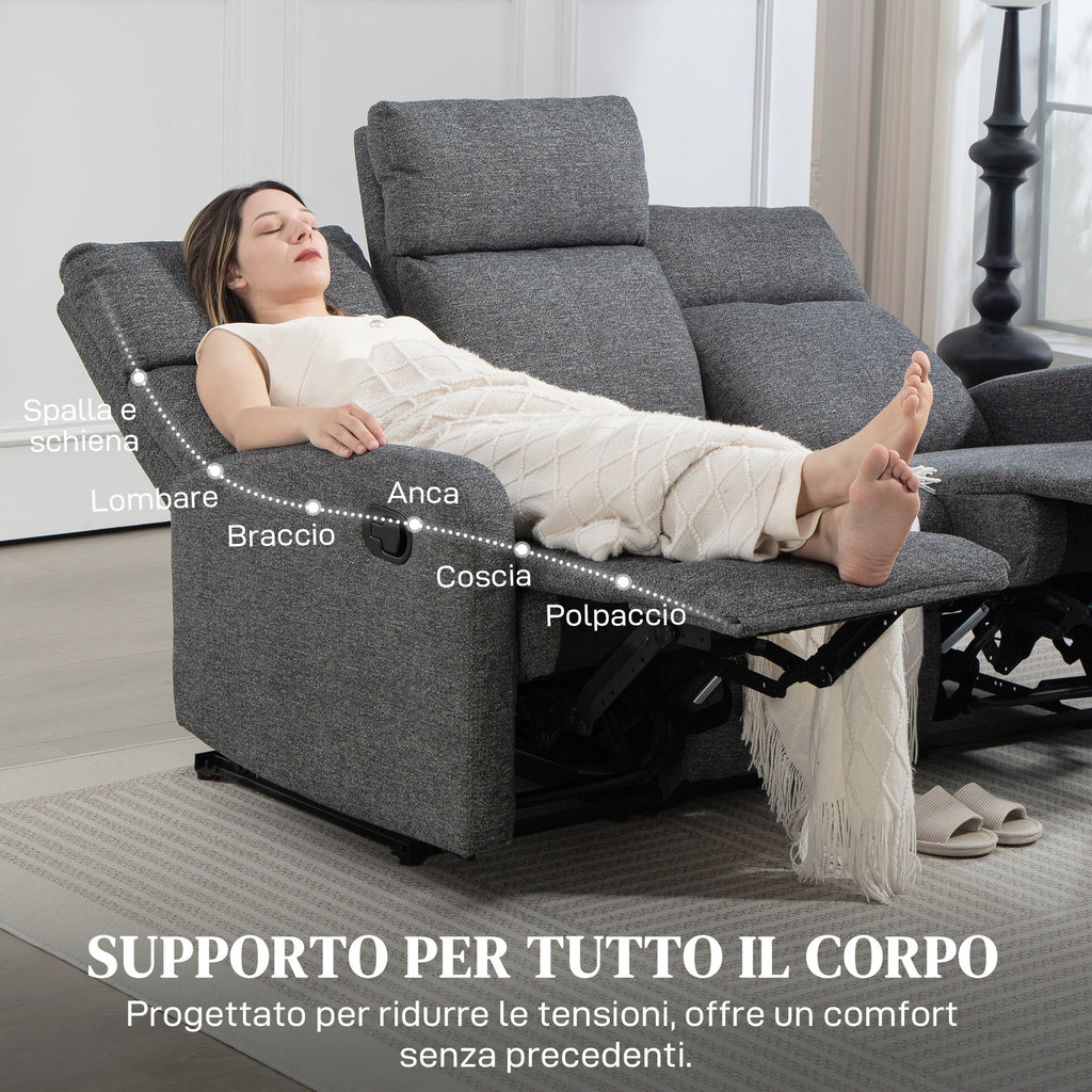 Divano 3 Posti Reclinabile in maniera Indipendente 179x91x98 cm con Rivestimento in Ciniglia Grigio