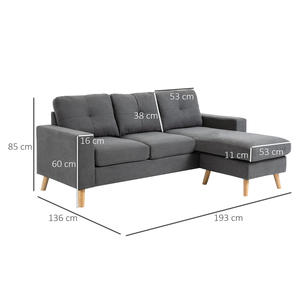 Divano a 3 posti a forma di L , molto moderno, è ideale per una serata al cinema, una serata di giochi o una serata dedicata ai libri! Combina chaise longue con divano a due piazze e offre spazio sufficiente per far sedere comodamente tre persone. La struttura in legno con gambe in legno di albero dalla gomma garantisce stabilità e durata. Con rivestimento in lino traspirante, è rimovibile e lavabile. Si adatta a soggiorno, camera da letto o ufficio!