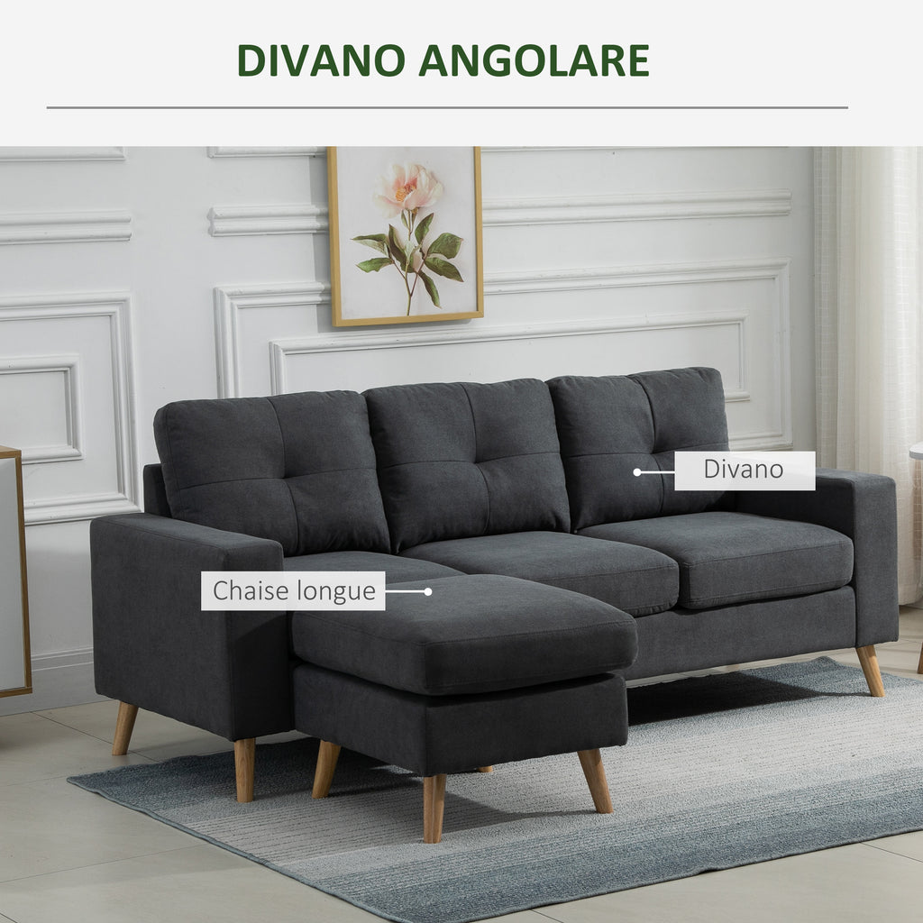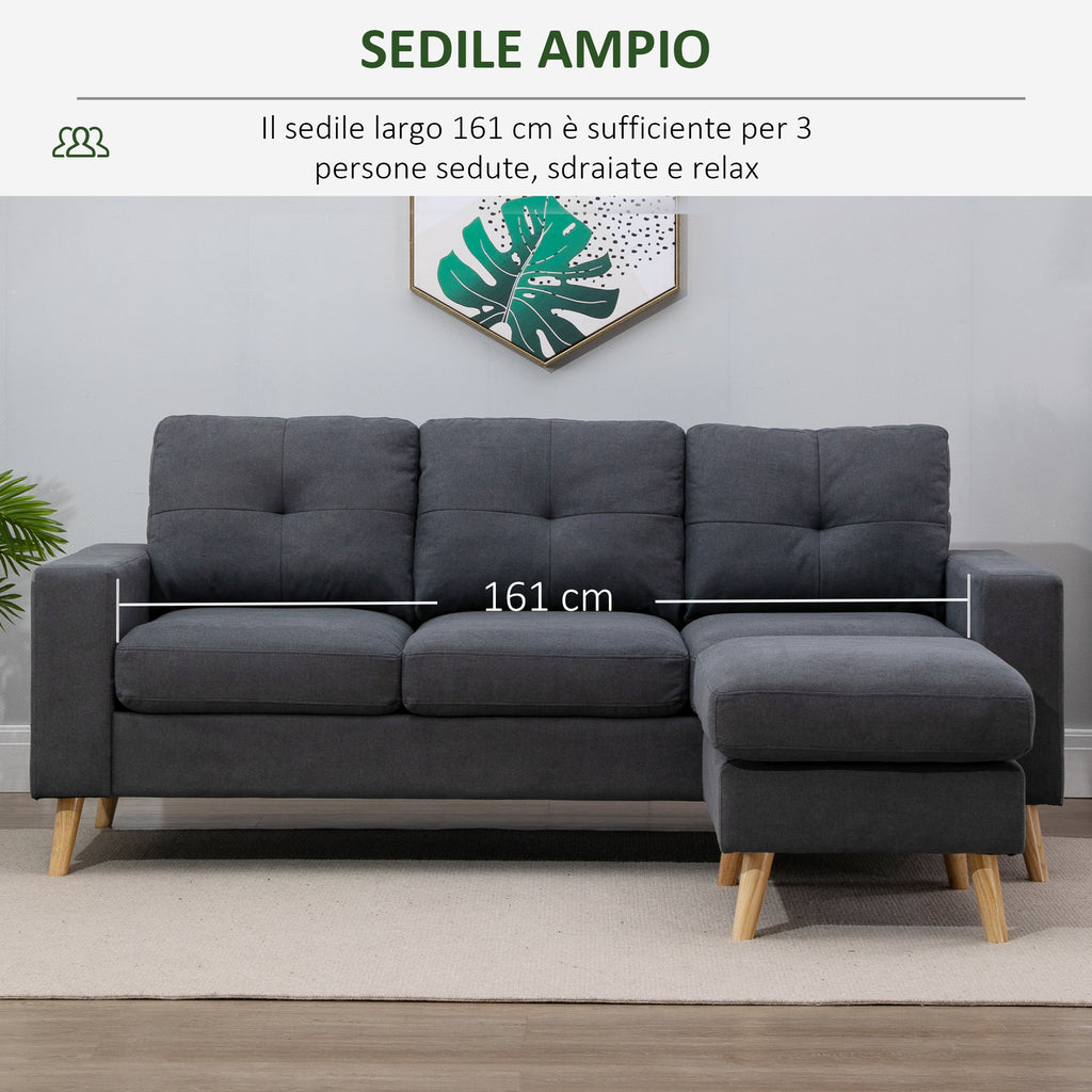 Divano Angolare 3 Posti in Lino con Penisola Grigio