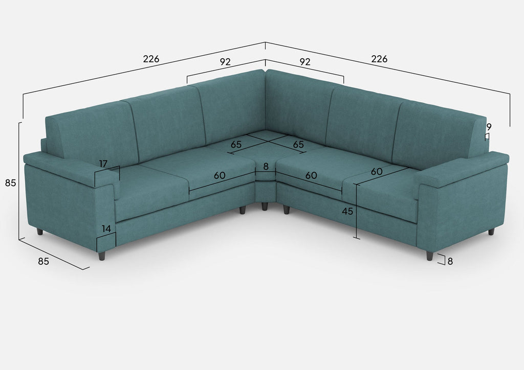 Divano Angolare 5 Posti 226x226x85 cm Marrak in Tessuto Petrolio