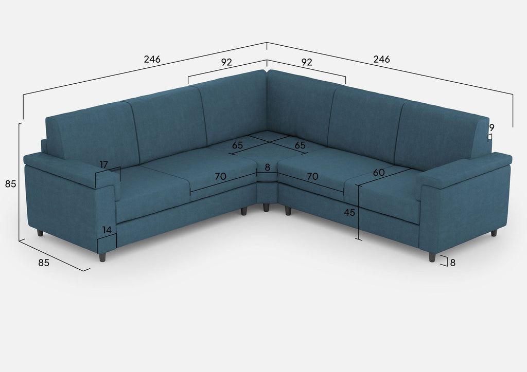 Divano Angolare 5 Posti 246x246x85 cm Marrak in Tessuto Avio