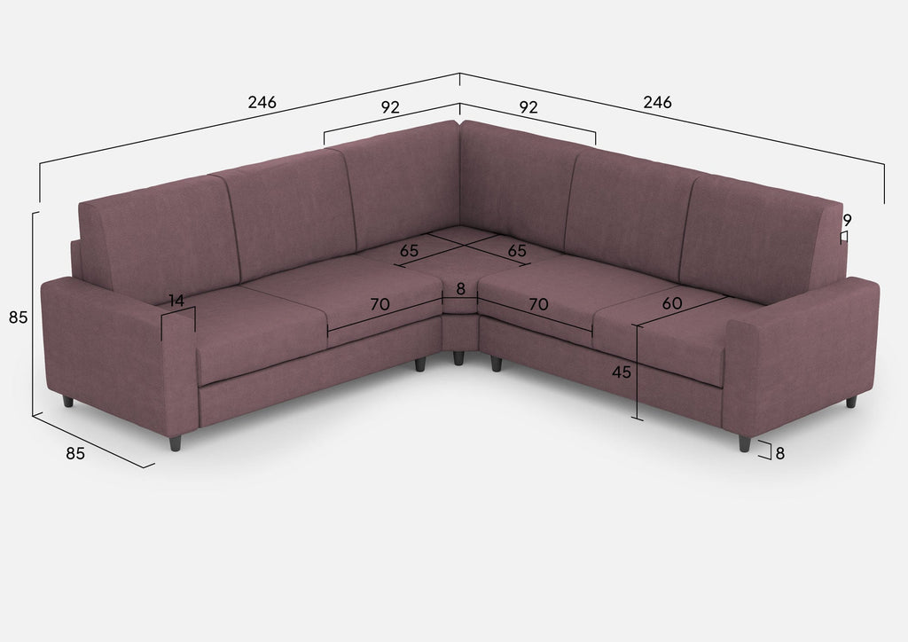Divano Angolare 5 Posti 246x246x85 cm Sakar in Tessuto Prugna