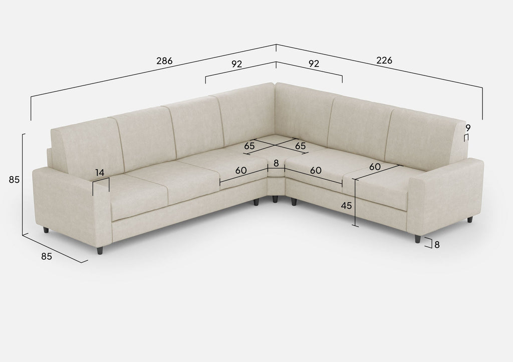 Divano Angolare 6 Posti 286x226x85 cm Sakar in Tessuto Latte