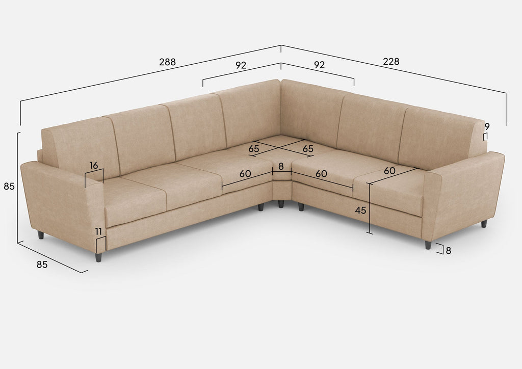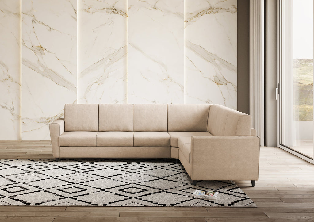Divano Angolare 6 Posti 288x228x85 cm Yasel in Tessuto Beige