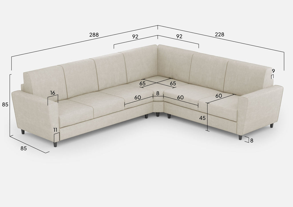 Divano Angolare 6 Posti 288x228x85 cm Yasel in Tessuto Latte