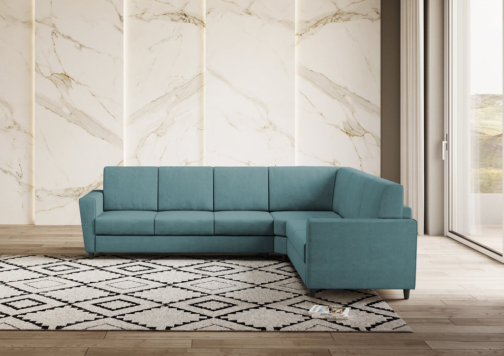 Divano Angolare 6 Posti 288x228x85 cm Yasel in Tessuto Petrolio