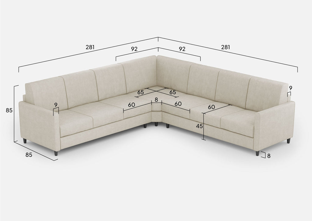Divano Angolare 7 Posti 281x281x85 cm Karay in Tessuto Latte