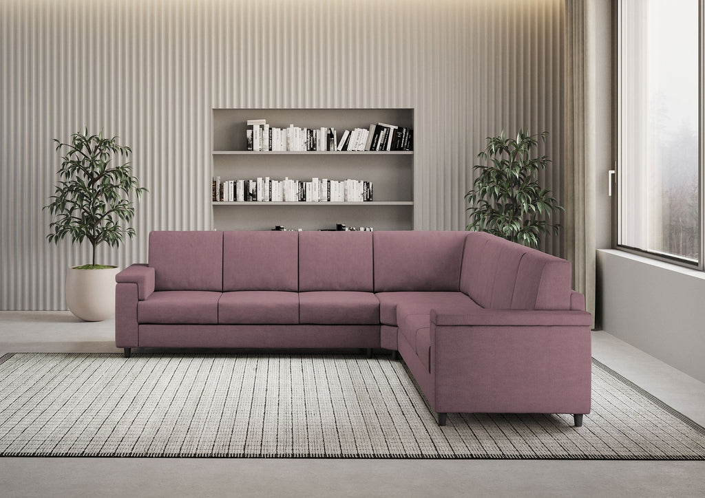 Divano Angolare 7 Posti 286x286x85 cm Marrak in Tessuto Prugna