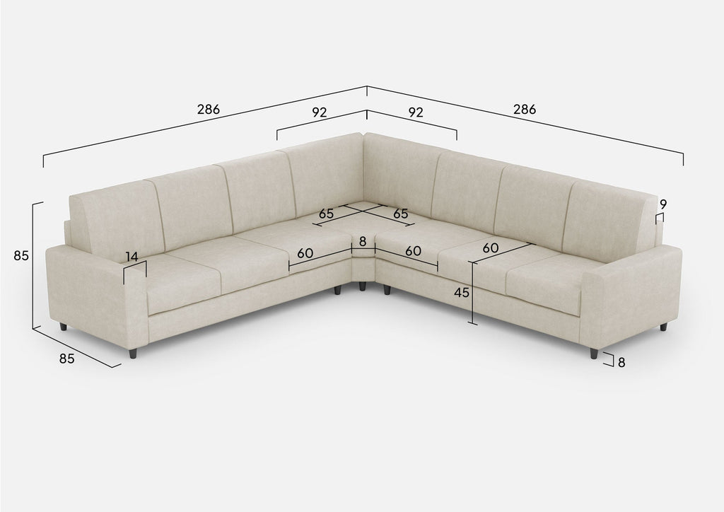 Divano Angolare 7 Posti 286x286x85 cm Sakar in Tessuto Latte