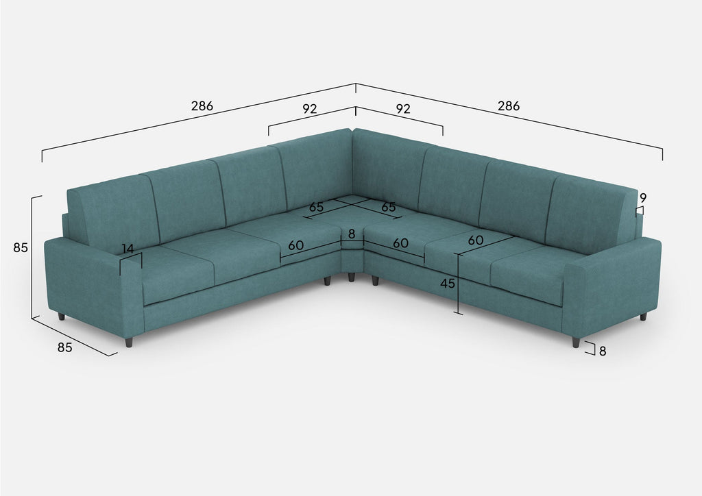 Divano Angolare 7 Posti 286x286x85 cm Sakar in Tessuto Petrolio
