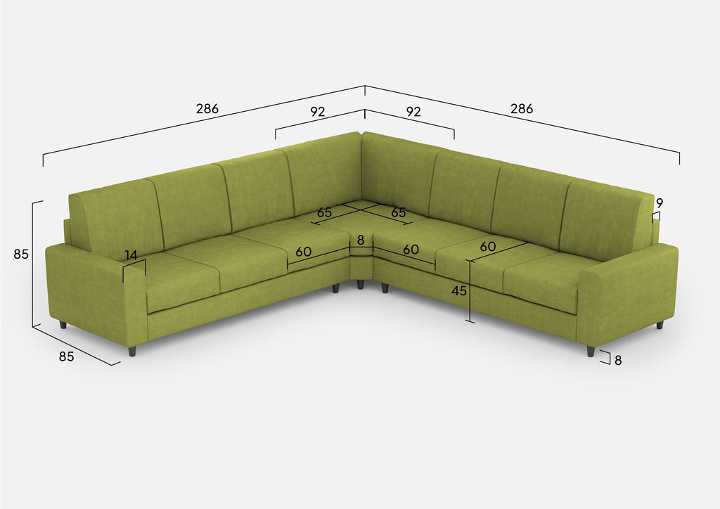 Divano Angolare 7 Posti 286x286x85 cm Sakar in Tessuto Verde