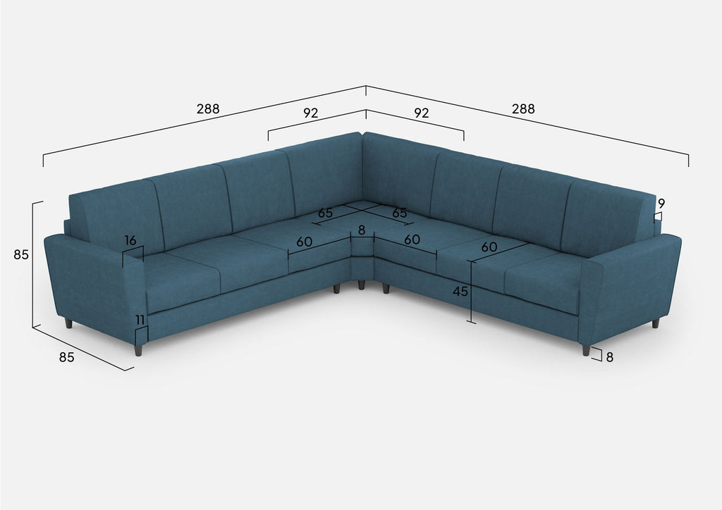 Divano Angolare 7 Posti 288x288x85 cm Yasel in Tessuto Avio