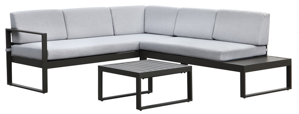 Divano Angolare da Giardino con tavolino in Alluminio Nero e Grigio