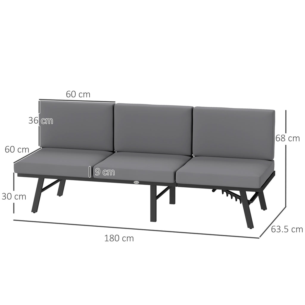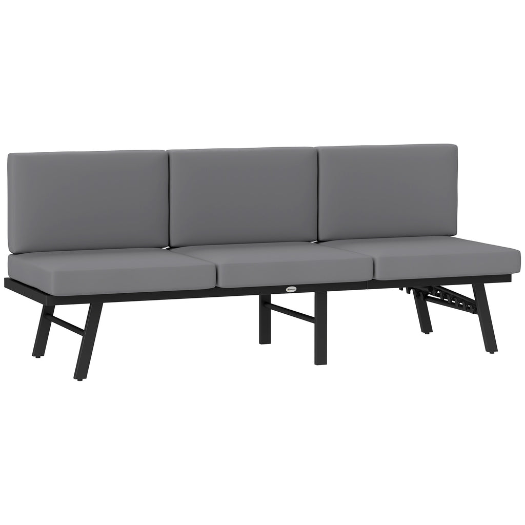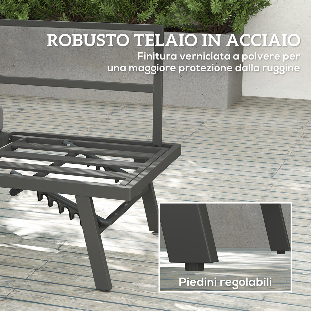 Divano da Giardino 3 in 1 180x63.5x68 cm Reclinabile su 5 Posizioni con Tavolino Estraibile Grigio