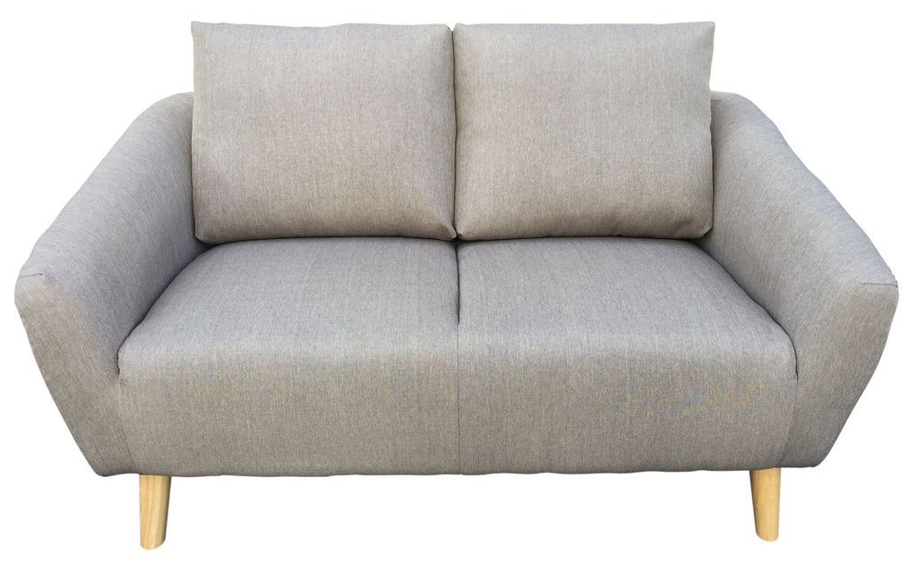 Divano 2 posti dal design moderno con struttura in legno e rivestimento in tessuto beige, per casa, sala d'attesa e ufficio.