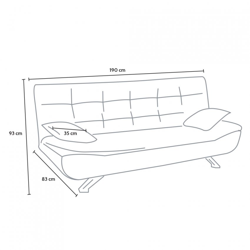 - Dimensioni divano: 190 x 83 x 93 cm (larghezza, profondità, altezza)