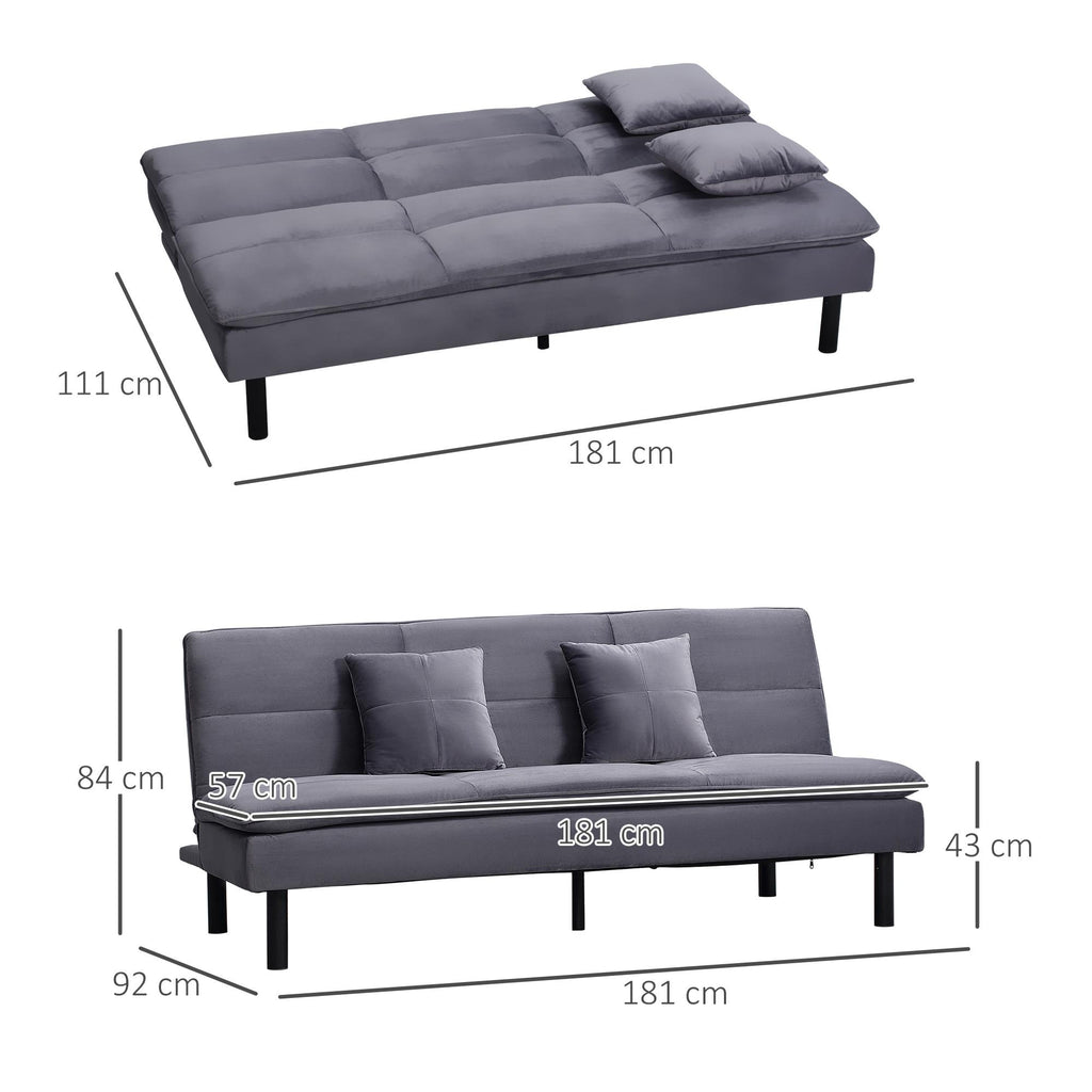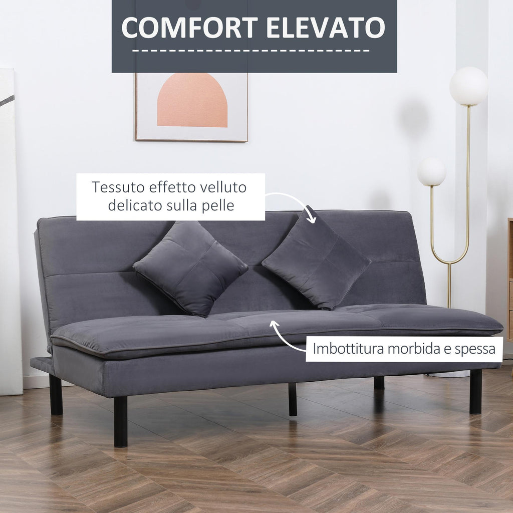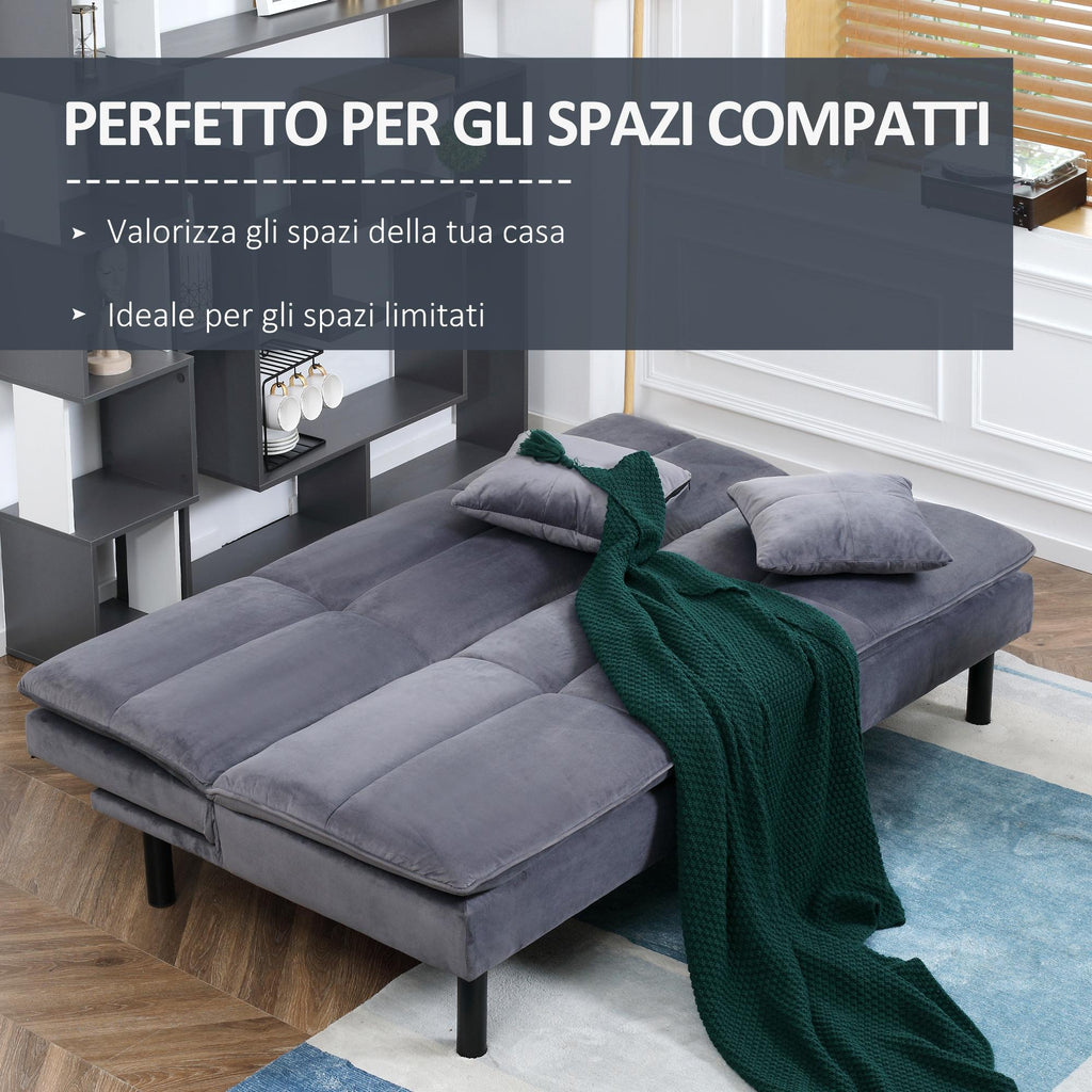 Divano Letto 2 Posti 181x92x84 cm in Tessuto Effetto Velluto Grigio