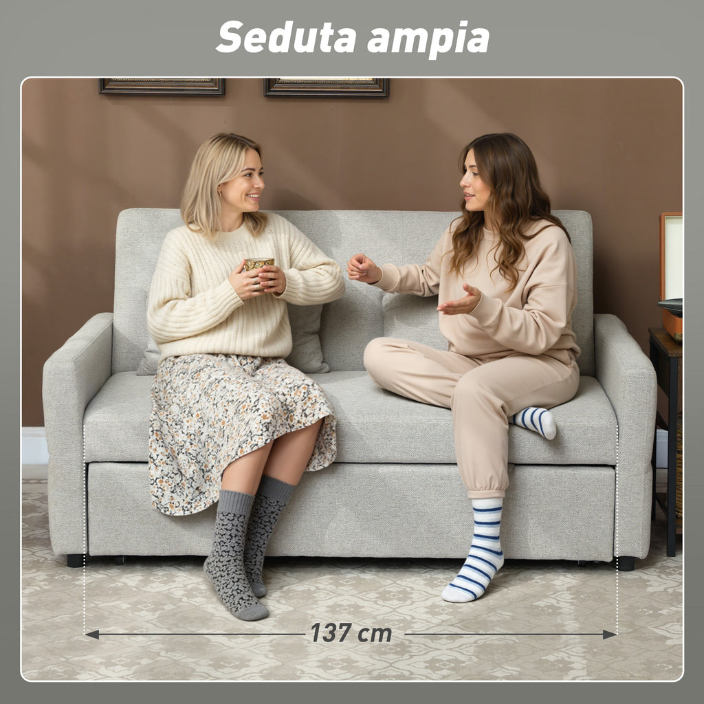 - COMODO E SOSTENITIVO: Con una schiuma ad alta resilienza e densità (14.5 cm di spessore), rivestimento in tessuto effetto lino traspirante, seduta larga 137 cm e due cuscini, questo divano letto matrimoniale relax assicura un eccellente comfort e supporto