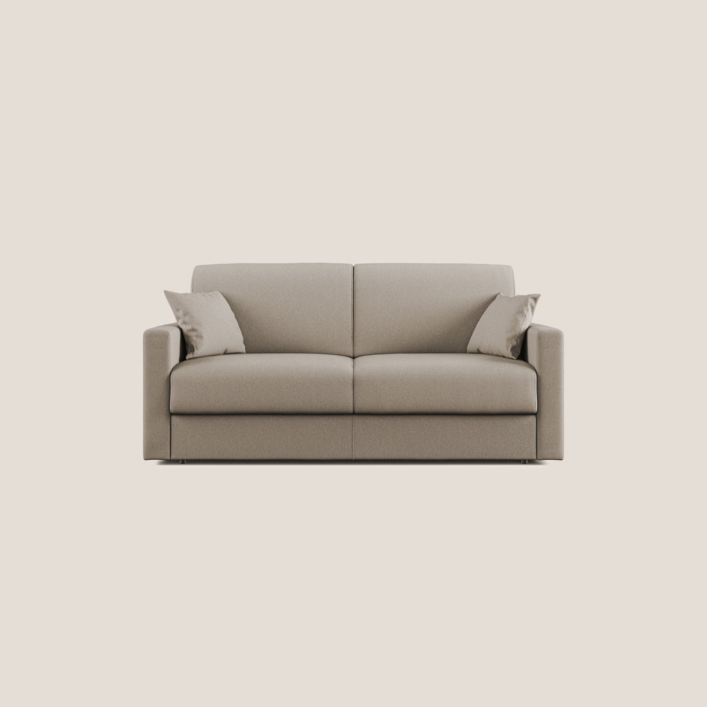 Il divano letto matrimoniale è la soluzione ideale per coloro che cercano un divano funzionale e confortevole. Grazie al pratico meccanismo di apertura e chiusura, non è necessario rimuovere i cuscini per trasformarlo in letto. Il divano è progettato con un materasso di alta qualità e dispone di un vano porta cuscini nello schienale, rendendolo sempre pronto all'uso. Il rivestimento in tessuto impermeabile e antimacchia permette di rimuovere le macchie senza che vengano assorbite, ed è completamente sfoderabile e lavabile in lavatrice a 30°. Inoltre, è possibile scegliere una versione del divano letto con materasso da 18 cm e rete elettrosaldata o a doghe, ideale per un uso quotidiano nella versione letto. Entrambi i materassi sono ipoallergenici ed ergonomici, realizzati con materiali di alta densità e rivestiti con tessuto stretch anallergico e fascia traspirante 3D.