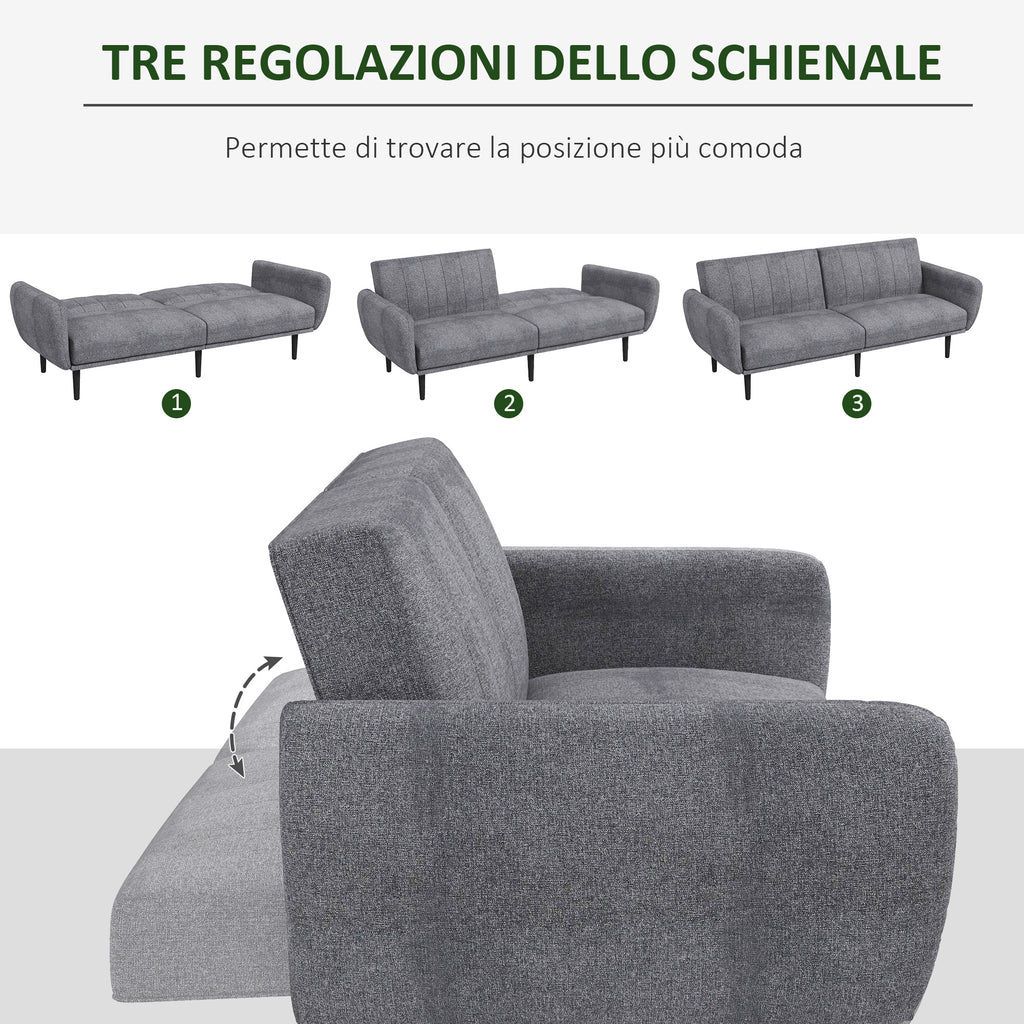 Divano Letto 3 Posti 208x84x82 cm in Tessuto Grigio