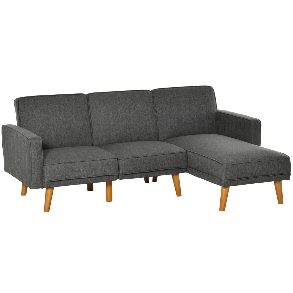 Divano Letto Angolare 194x134x78 cm con Penisola in Legno e Tessuto Grigio Scuro