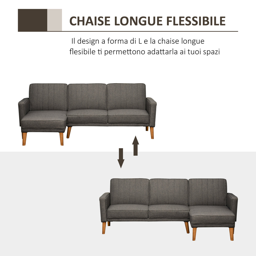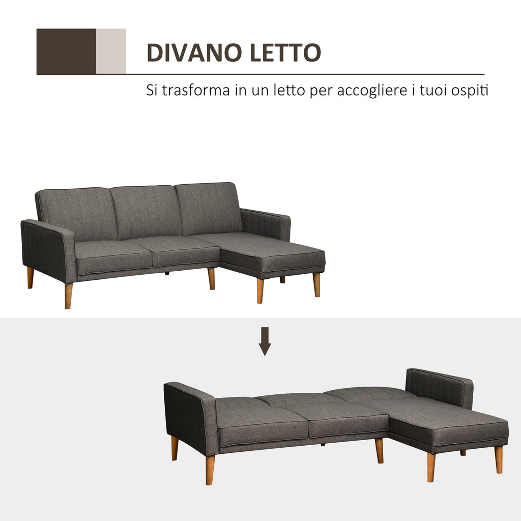 Divano Letto Angolare 216x139x80 cm con Penisola in Legno e Tessuto Grigio
