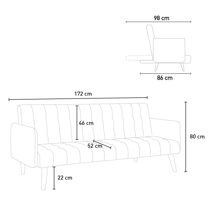 - Dimensioni divano: 172 x 86 x 80 cm (larghezza, profondità, altezza)