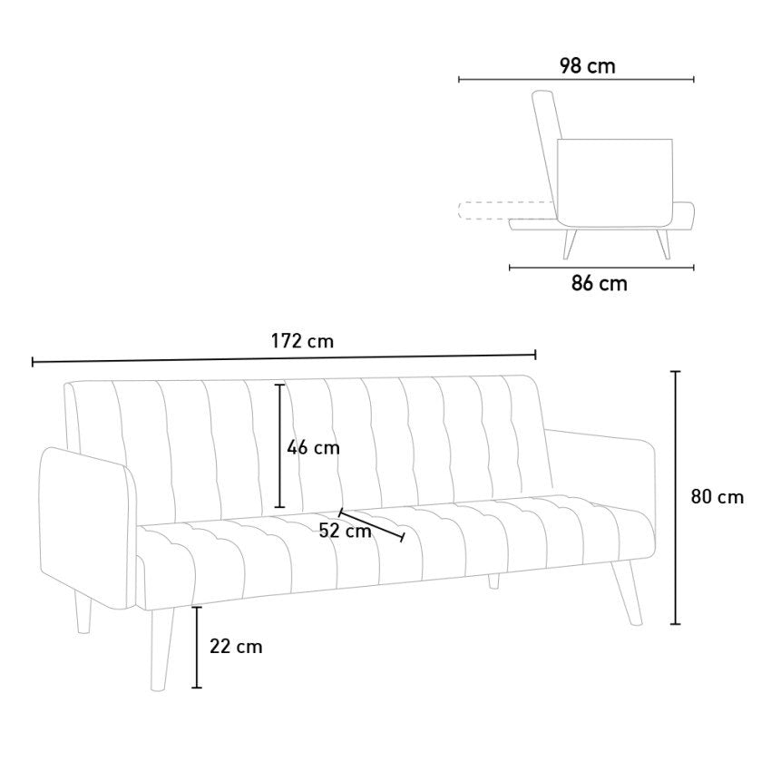 - Dimensioni divano: 172 x 86 x 80 cm (larghezza, profondità, altezza)