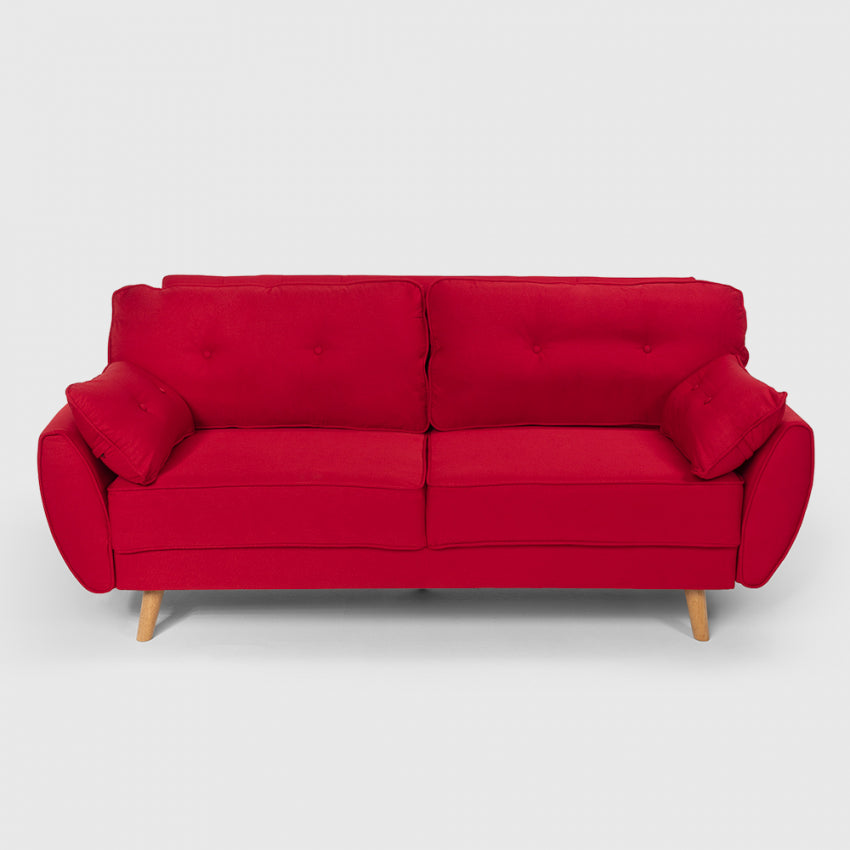 Davvero utile per chi ama avere ospiti e per chi ha poco spazio a disposizione, il divano Fortaleza sarà l'angolo preferito non solo per il relax quotidiano. Per prolungare i momenti di riposo, grazie al pratico meccanismo clic clac, il divano si trasforma infatti in un comodo letto aggiuntivo: basterà semplicemente reclinare lo schienale e in men che non si dica si avrà a disposizione un letto confortevole da utilizzare quando si desidera accogliere un amico o un parente per la notte. La seduta imbottita, così come lo schienale dotato di cuscini abbottonati in capitonné, assicura inoltre un comfort senza fine e permette di rilassarsi dolcemente in qualsiasi ora della giornata. La struttura interna del divano è realizzata in legno massiccio, come gli stessi piedini, robusti e obliqui, che oltre a richiamare i mobili in stile nordico offrono la massima stabilità.