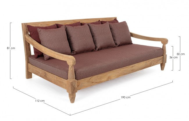 Divano Letto da Esterno Daybed 190x112x81h cm con Cuscini Bali Wine Fsc