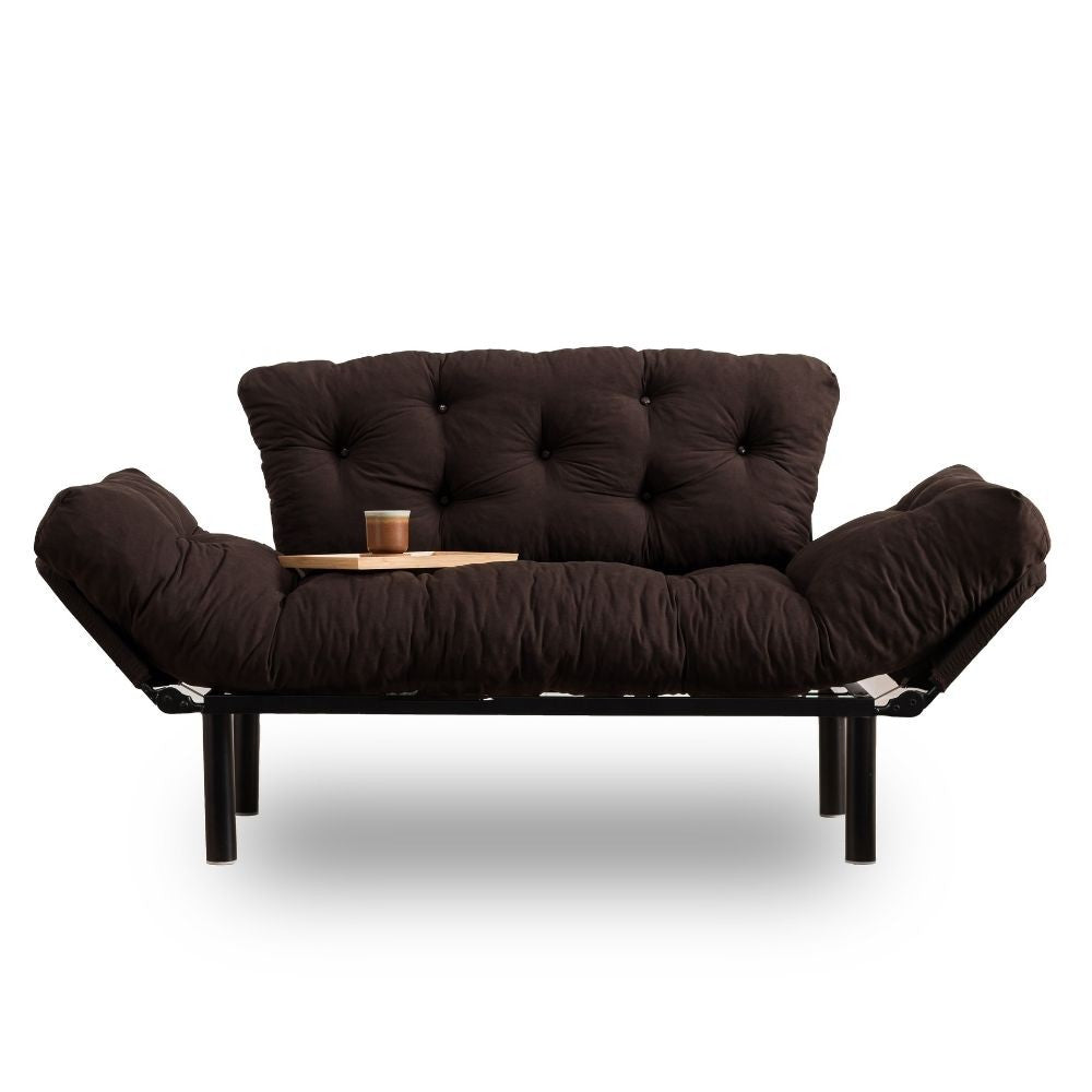 Divano letto marrone 190x70 braccioli reclinabili Nitta.