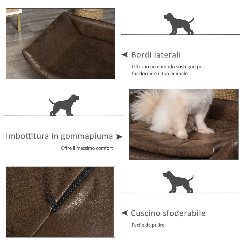 Divano per Cani e Gatti Imbottito 73x53x21 cm in Similpelle Marrone