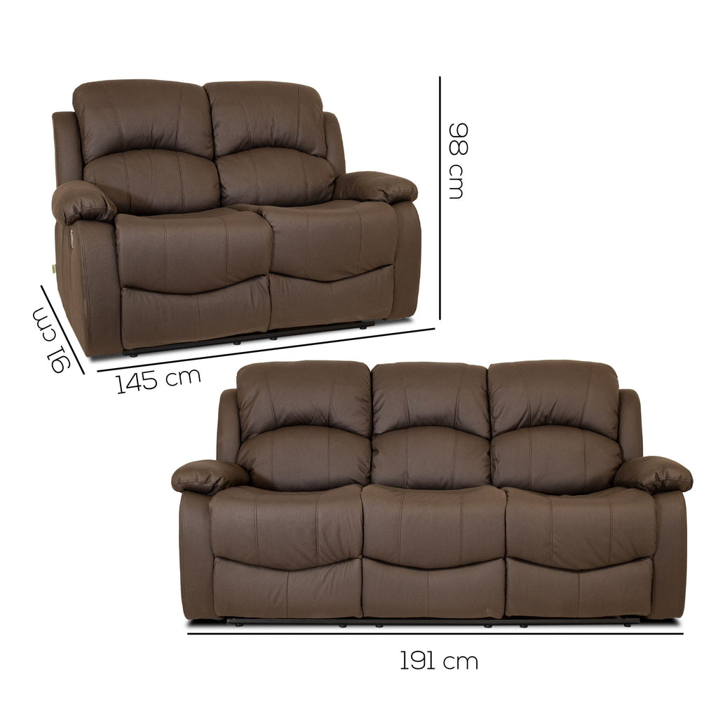 Set 2 Divani Reclinabili Manuali 2 Posti e 3 Posti in Econabuk Cross Chocolate
