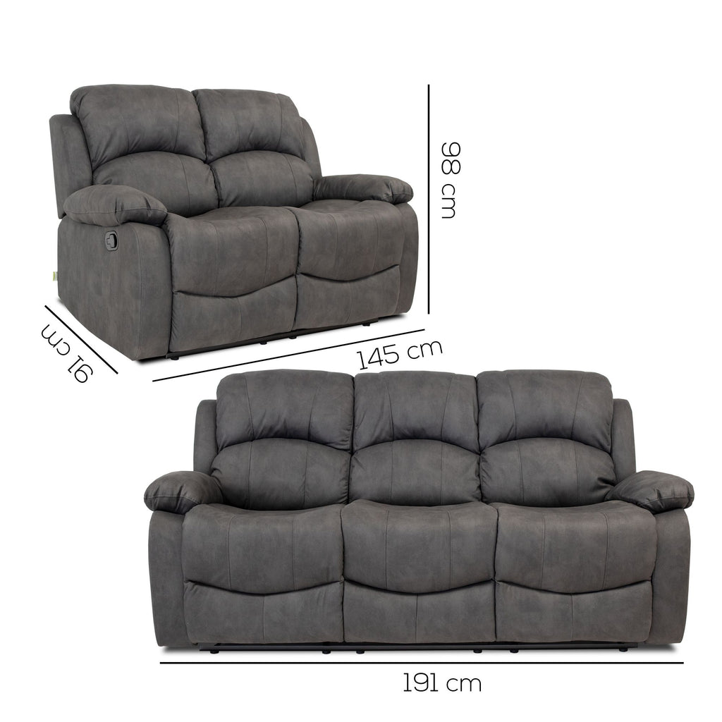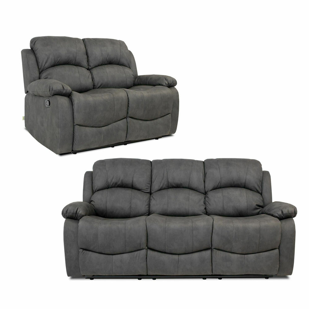 Set 2 Divani Reclinabili Manuali 2 Posti e 3 Posti in Econabuk Cross Grigio