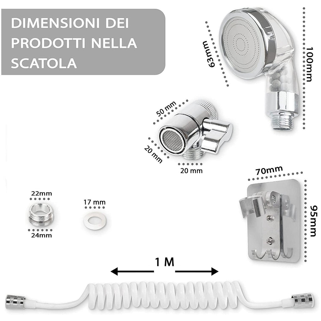 Doccetta per rubinetto lavandino portatile con tubo telescopico 1m e supporto