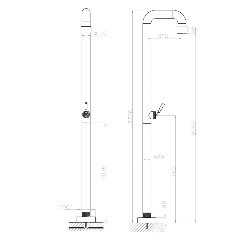 Doccia da Esterno Giardino Miscelatore 20x42x230 cm in Acciaio Inox Sined Cagliari