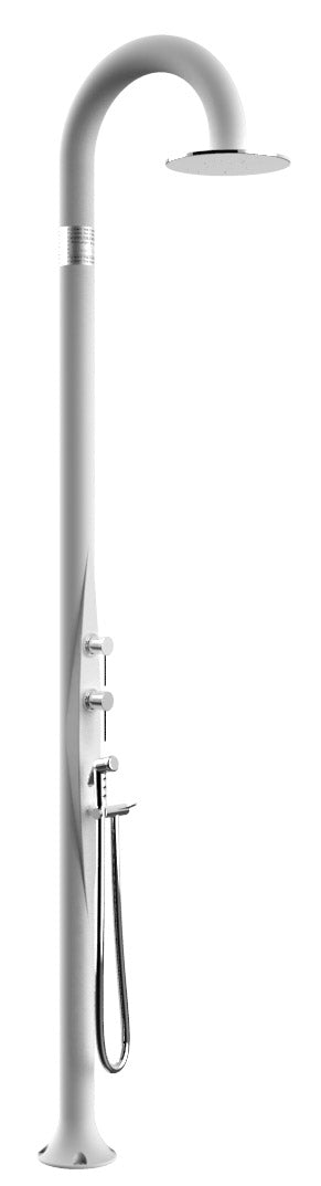 Doccia da Giardino Piscina con Soffione 250 mm Miscelatore Caldo-Freddo Deviatore e Doccetta Mobile 232x30x17 cm Arkema Funny Yin Bianco