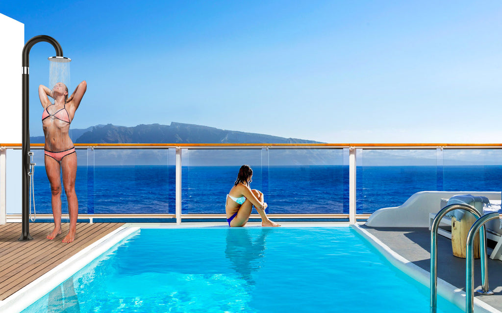 La doccia è semplicissima da installare. La base deve essere fissata, con il materiale in dotazione, ad una superficie stabile: un pavimento in cemento, pietra, un base in calcestruzzo, ecc. Il fissaggio avviene tramite i tasselli in dotazione o altri a discrezione del cliente a seconda della superficie di fissaggio. La doccia ha doppia entrata, una per l'acqua calda ed una per la fredda, con colore identificativo.